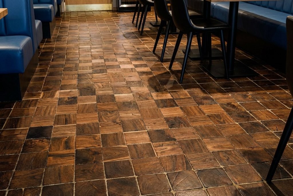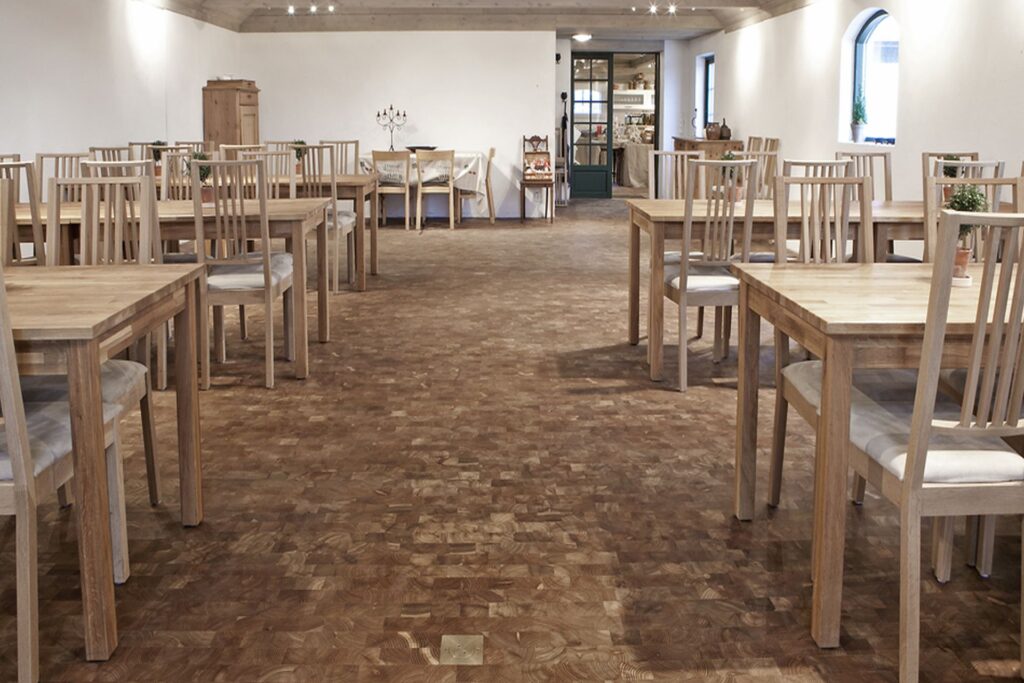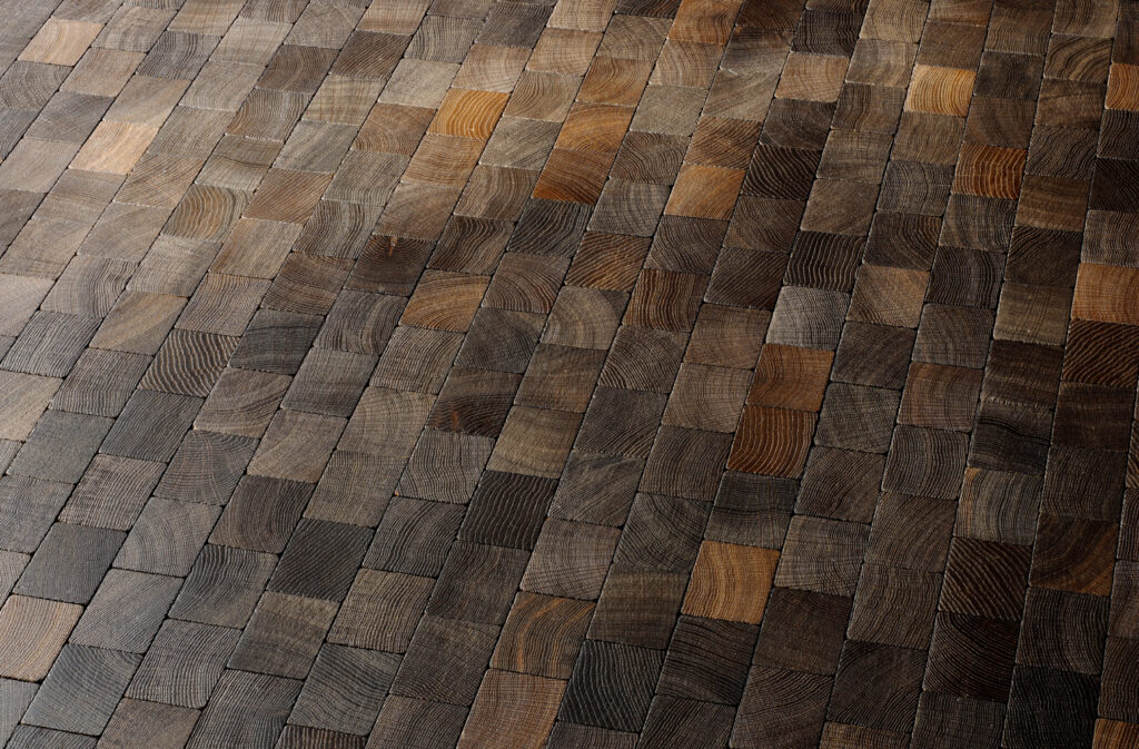 Diese Struktur macht den Boden extrem druckfest und langlebig. Während wir den Begriff „Holzpflaster“ vorwiegend im Kontext von hochbelastbaren Industrieflächen verwenden, steht „Hirnholzparkett“ bei uns für exklusives, urbanes Wohndesign. Es ist die perfekte Wahl für alle, die ein authentisches Naturprodukt mit maximaler Belastbarkeit und einer einzigartigen Optik suchen.